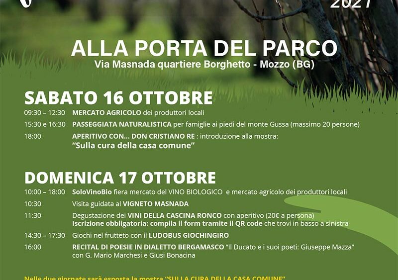 Sabato 16 e domenica 17 ottobre esporremo alla Festa Agricola Biologica ed a Solo Vino Bio alla Porta del Parco a Mozzo (Bg) in Via Masnada. Venite a trovarci e ad assaggiare i nostri vini.